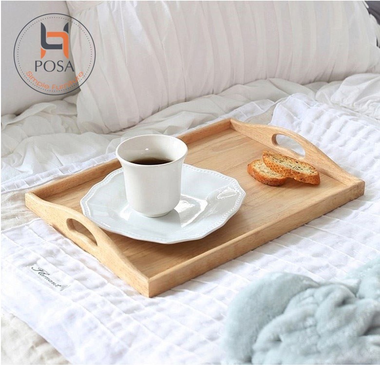Khay gỗ chữ nhật có tay cầm dùng đựng đồ ăn KGDC-xu4